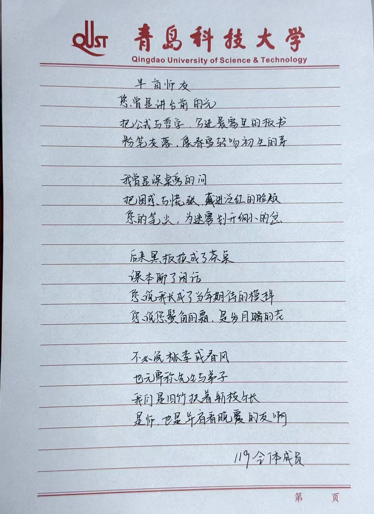 作品四《致我们敬爱的老师》