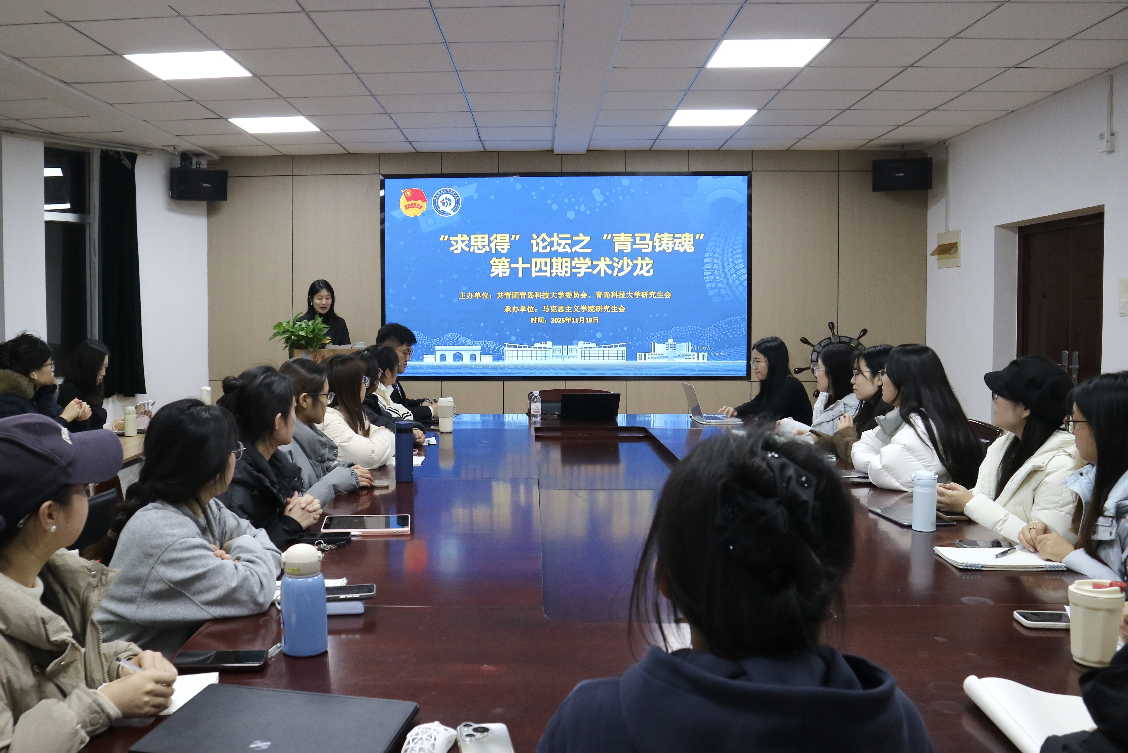 11月18日,bevictor伟德官网于2010会议室举办“求思得”暨“青马铸魂”第十四期学术沙龙活动。马克思主义中国化教研室副主任、硕士研究生导师栾超担任指导老师,2024级、2025级研究生参加,活动由公司研究生会学术部干事孔嘉祺主持。