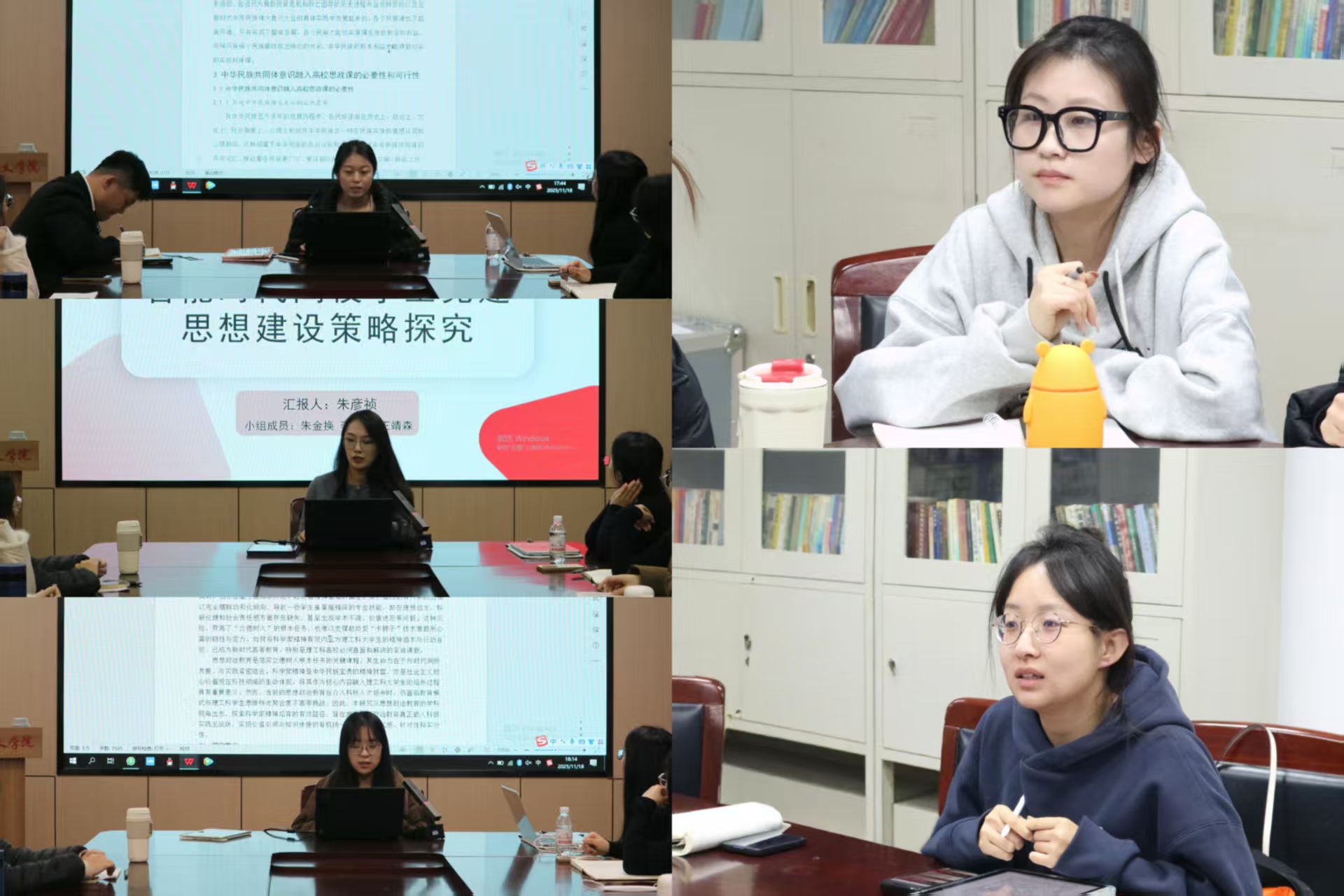 在交流环节,研二各小组同学围绕自己撰写的论文进行展示,分享自身论文的研究问题、结构设计与写作思路;研一各小组则交流了意向选题,从题目切入角度、研究意义及可行性等方面展开分析。师生之间围绕学术方向选择、研究路径、论文写作策略及研究中可能遇到的问题进行充分交流,为同学们的后续研究提供了可行的参考建议。