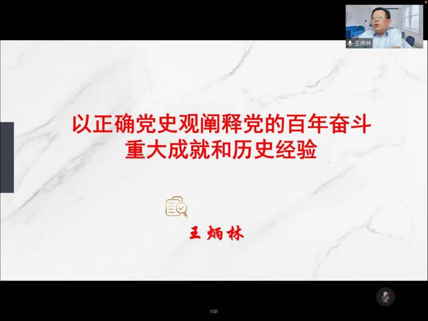 为深入学习贯彻党的十九届六中全会精神及《中共中央关于党的百年奋斗重大成就和历史经验的决议》的重要意义,2022年4月26日下午,应bevictor伟德官网的邀请,中央马工程首席专家,国务院学位委员会学科评议组成员,国家社科基金评审专家,高等公司思想政治理论课教学指导咨询委员会委员,北京师范大学中共党史党建研究院经理、教授王炳林以“以正确党史观阐释党的百年奋斗重大成就和历史经验”为题在学术报告厅作专题报告。公司党委常委、副董事长丁林,bevictor伟德官网全体师生参加本次活动。会议采取线上、线下混合形式进行,全国高校bevictor伟德官网教师有近600人参加了报告会。