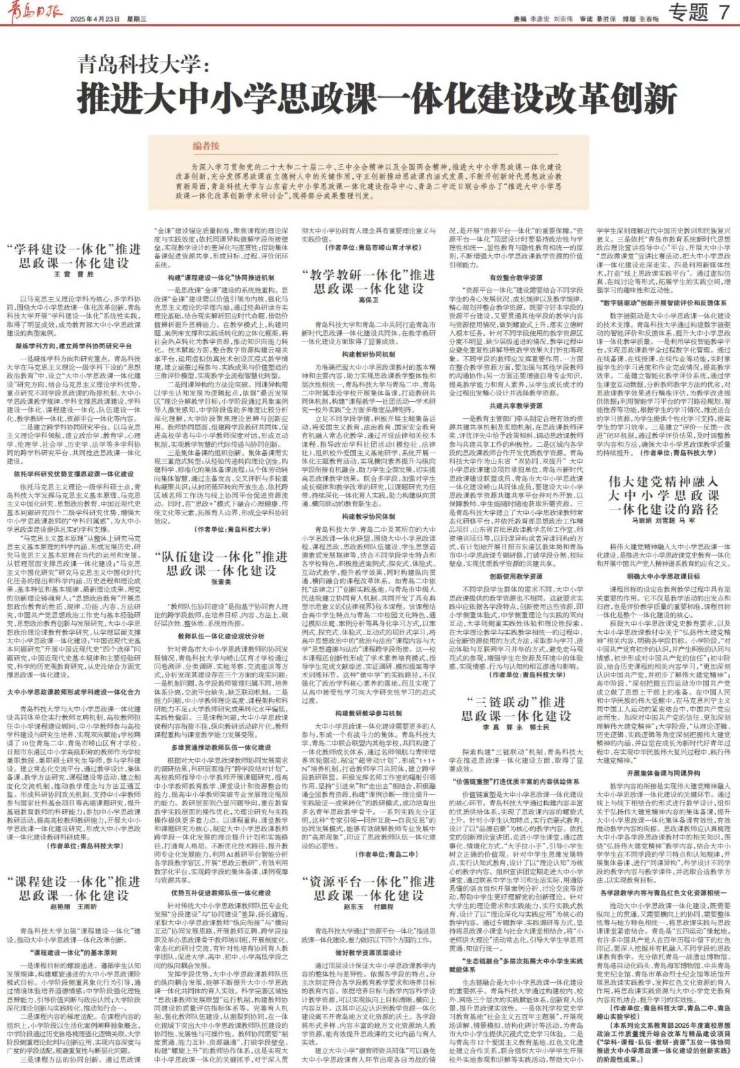 【学术成果】青岛日报:bevictor伟德官网:推进大中小思政课一体化建设改革创新