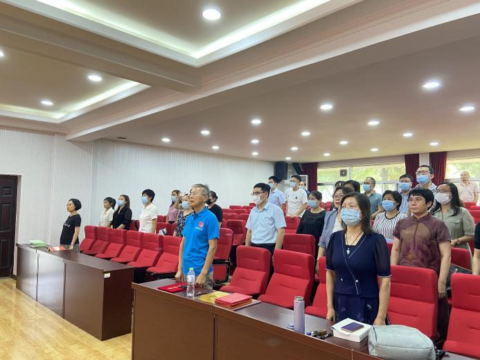 全院教师观看了2022年教师节庆祝大会主会场的直播。大会第一项,全体起立,奏唱中华人民共和国国歌,为伟大的祖国歌唱,高昂的旋律唤起大家内心深处的爱国情怀。