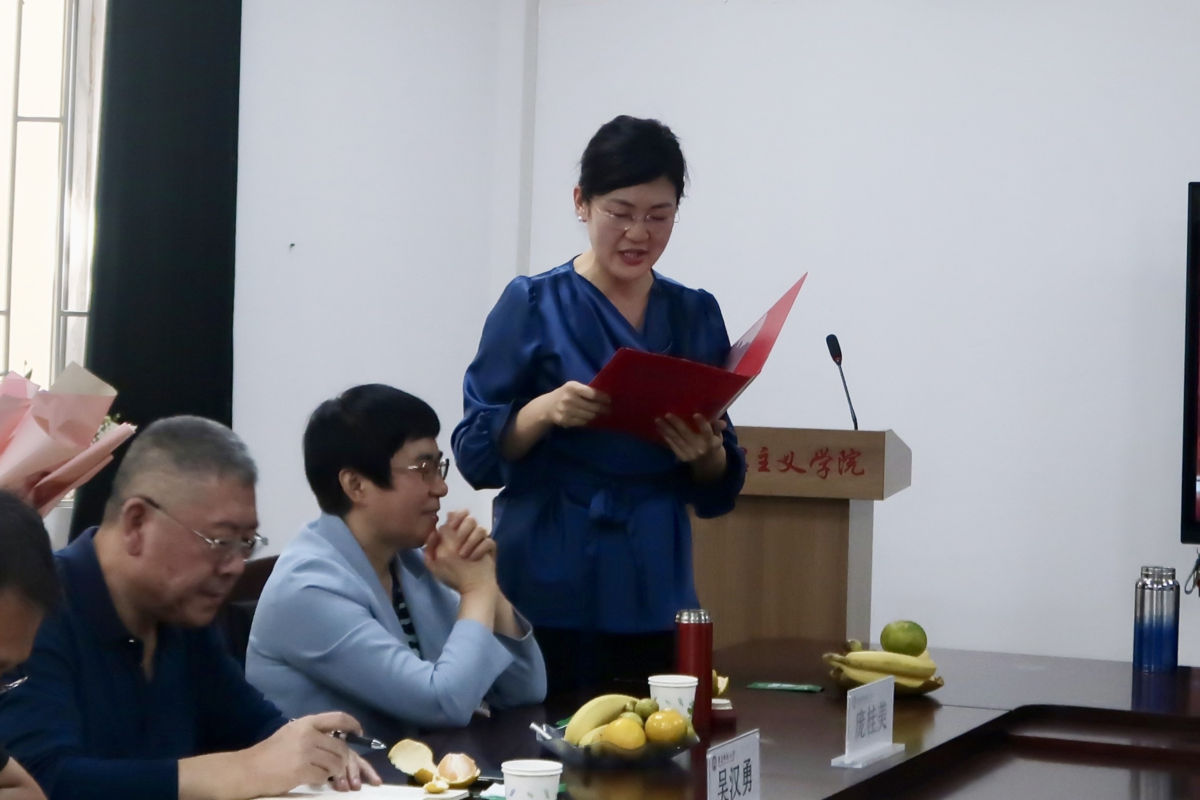 2007级研究生代表马楠发言。她深情回顾了庞桂美教授在其学习与生活的历程中所给予的深切关怀与慷慨帮助,言语之中流露出对庞桂美教授深深的敬意与感激之情。马楠的发言展现了庞桂美教授在员工们心中的重要地位,也表现了员工们对庞桂美教授的敬爱之情。