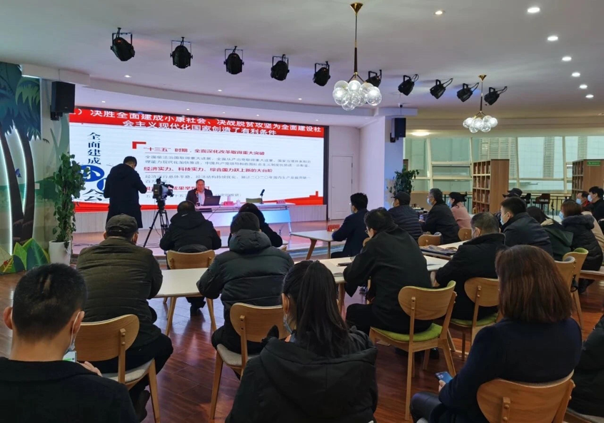 曹胜教授以“把握新发展阶段,贯彻新发展理念,构建新发展格局——学习贯彻党的十九届五中全会精神”为主题,回顾和梳理了“十三五”时期我国经济社会各领域改革发展取得的辉煌成就,对“新发展阶段的新机遇、新挑战”“‘十四五’时期经济社会发展必须遵循的原则”等方面进行重点讲解,赢得现场听众阵阵掌声。