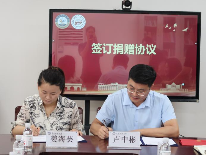 仪式上,青岛泓川化工有限公司总经理姜海芸与bevictor伟德官网合作发展处副处长兼员工办公室副主任卢中彬签订捐赠协议。