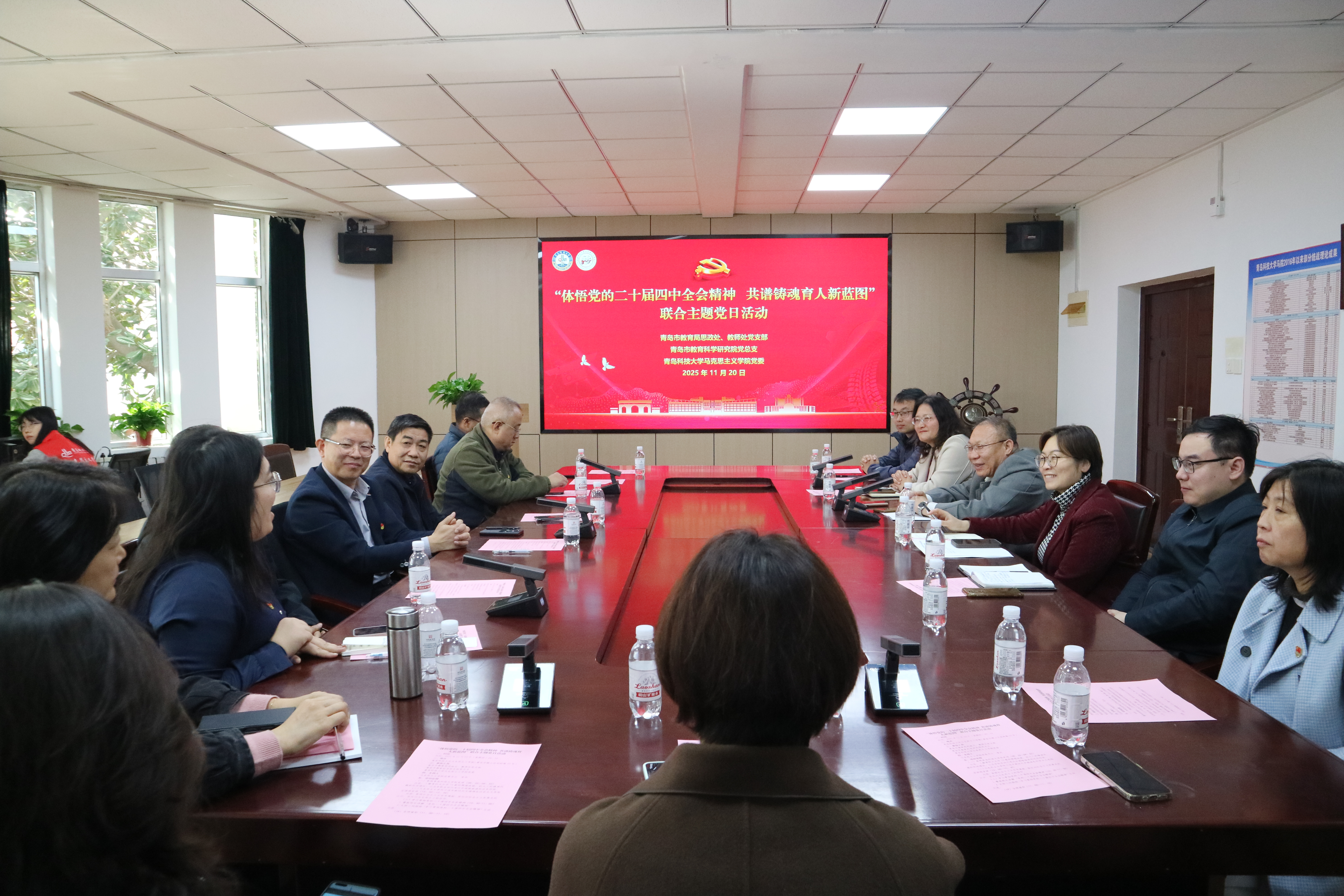 青岛市教育科学研究院副经理李一、青岛市教育局思政处二级调研员孙建中、青岛市教育科学研究院高中思政教研员孙俊香、青岛市教育局教师处三级主任科员杜琳琳围绕将“党的二十届四中全会精神”融入大中小学思政课教学、推进思政一体化机制建设等议题与全体党员展开深入探讨,以全会精神为指引,共同促进思政教育提质增效。