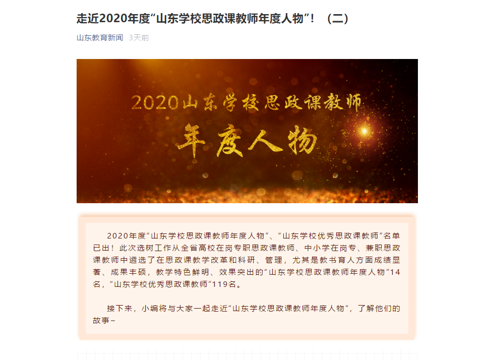 [媒体​bevictor伟德官网]山东省教育厅:廿四载青春滋兰树惠润无声 廿四度春秋杏坛耕耘敏于行——曹胜老师
