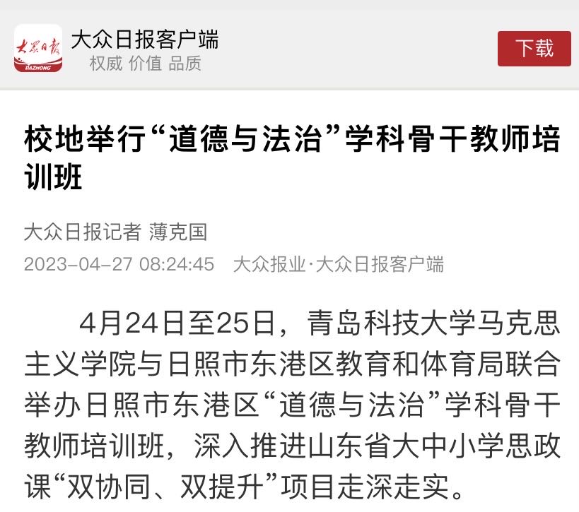 [媒体​bevictor伟德官网]大众日报:校地举行“道德与法治”学科骨干教师培训班