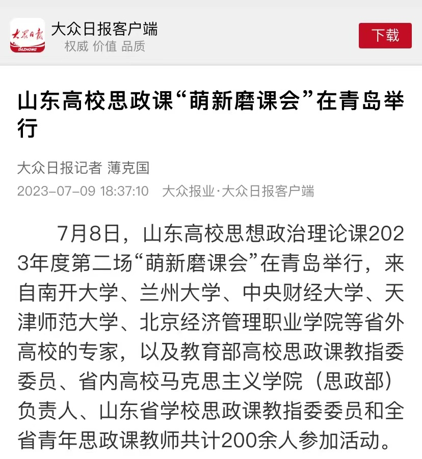 [媒体​bevictor伟德官网]大众日报、凤凰网青岛、搜狐网、网易新闻、观海新闻:山东高校思政课“萌新磨课会”在青岛举行