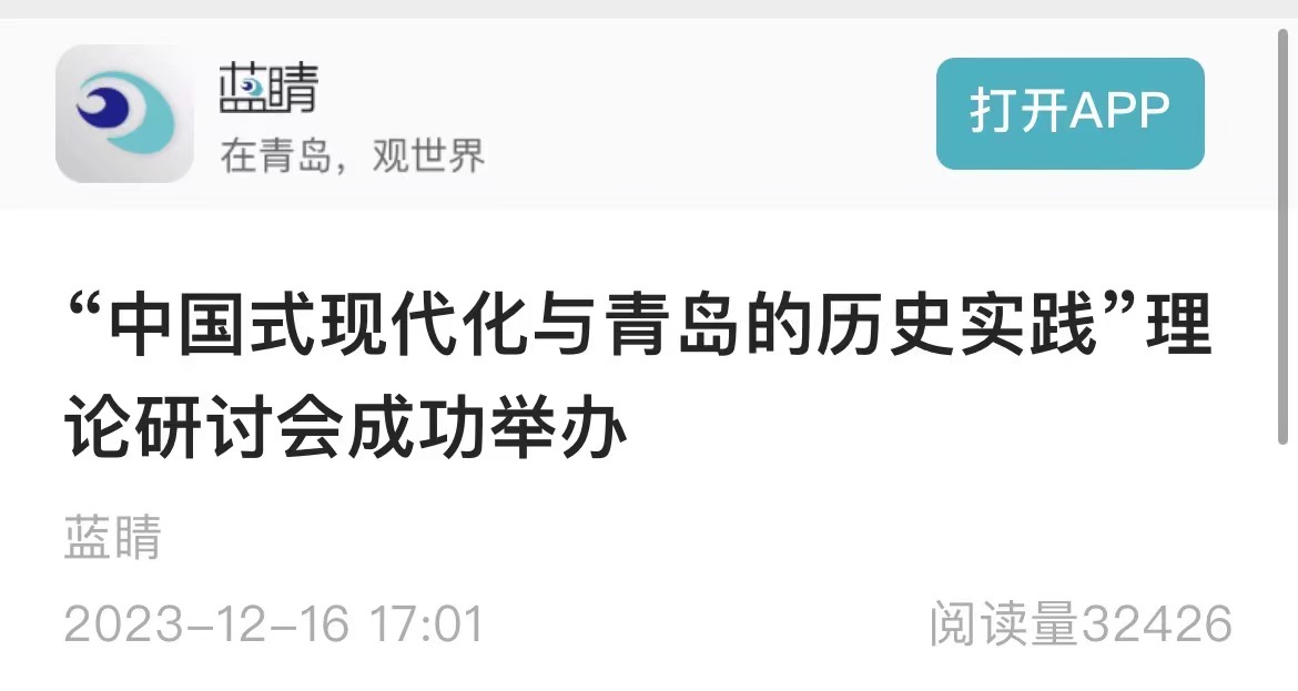 [媒体​bevictor伟德官网]海报新闻、大众网·青岛、环球网、蓝睛新闻:“中国式现代化与青岛的历史实践”理论研讨会在公司成功举办