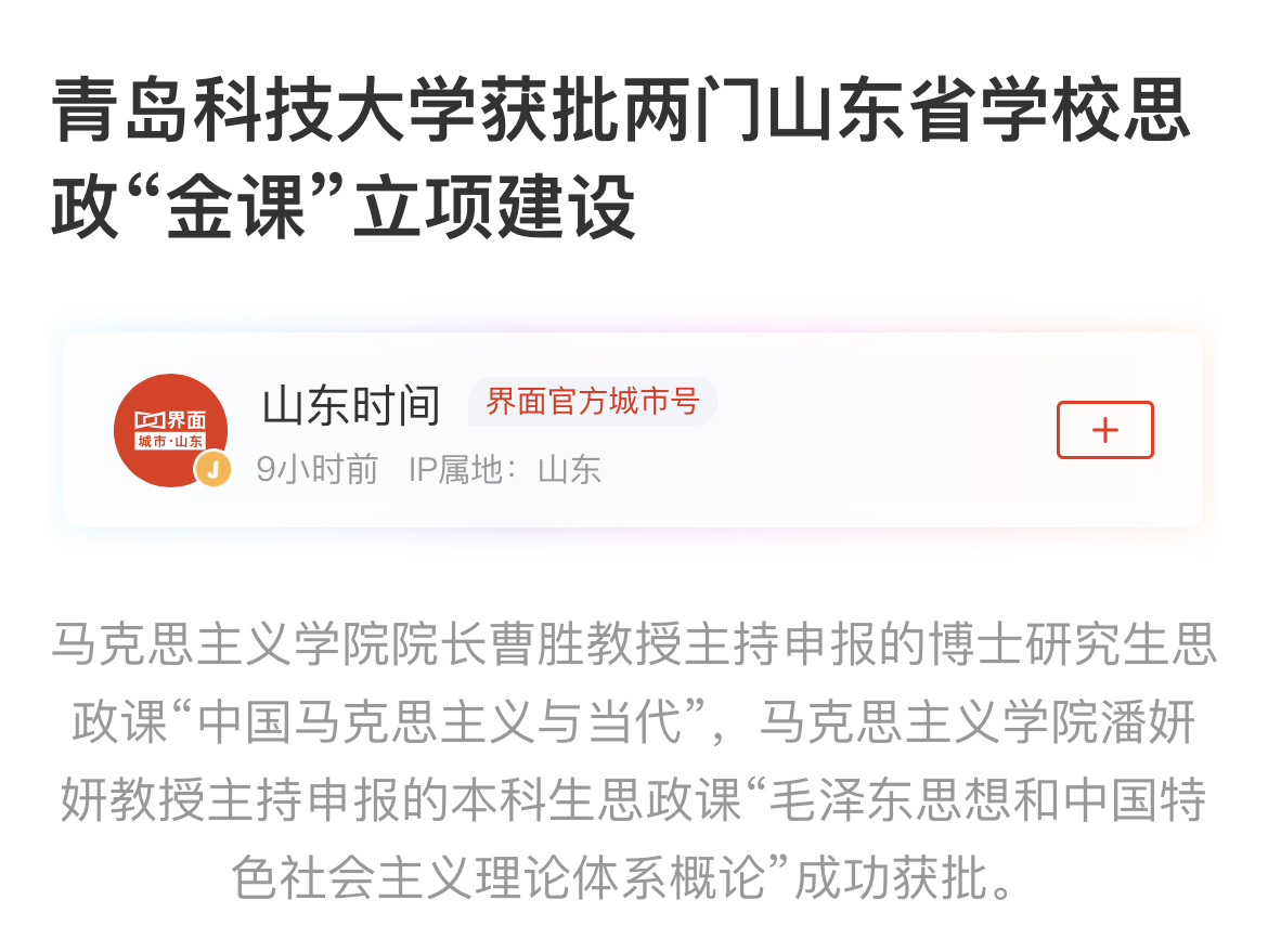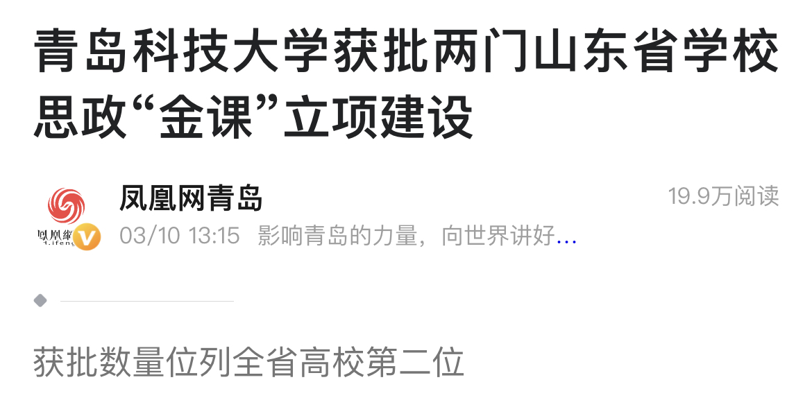 [媒体​bevictor伟德官网]凤凰网青岛、山东时间:bevictor伟德官网获批两门山东省公司思政“金课”立项建设