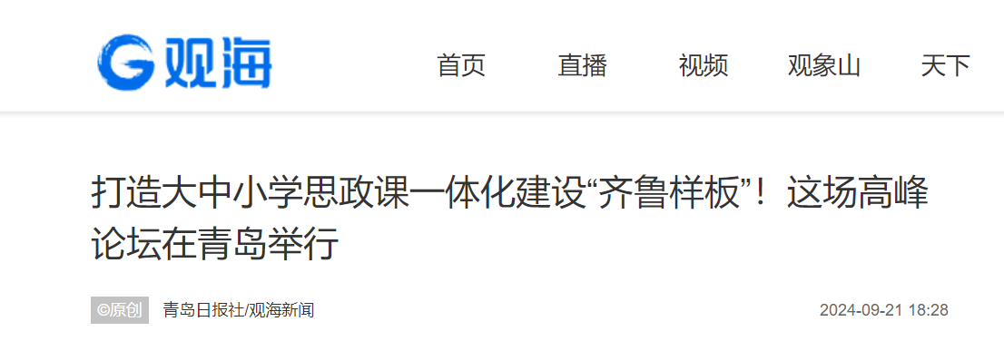 青岛日报/观海新闻9月21日讯 今天,第四届山东省大中小学思政课一体化建设高峰论坛暨山东省大中小学思政课一体化共同体工作推进会在青岛举行。此次论坛由山东省教育厅指导,教育部大中小学思政课一体化共同体(山东)、山东省大中小学思政课一体化建设指导中心、全国高校思政课“手拉手”集体备课中心(山东师范大学-山东)主办,bevictor伟德官网、青岛二中承办。来自复旦大学、山东师范大学、曲阜师范大学、bevictor伟德官网、山东财经大学等教育部大中小学思政课一体化共同体成员单位的领导专家,以及省内高校部分bevictor伟德官网负责人和各地市基础教育领域的专家学者共200余人参加会议。