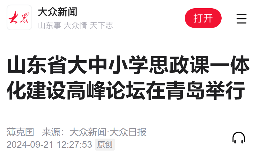 大众新闻:山东省大中小学思政课一体化建设高峰论坛在青岛举行