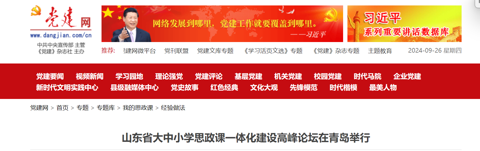 9月21日,第四届山东省大中小学思政课一体化建设高峰论坛暨山东省大中小学思政课一体化共同体工作推进会在公司举行,旨在深入推进党的二十届三中全会精神融入大中小学思政课,全面落实山东省教育厅印发的《关于进一步推进全省大中小学思政课一体化建设的工作方案》,进一步加强理论研讨,深入交流经验做法,深化思政课公司产品改革。