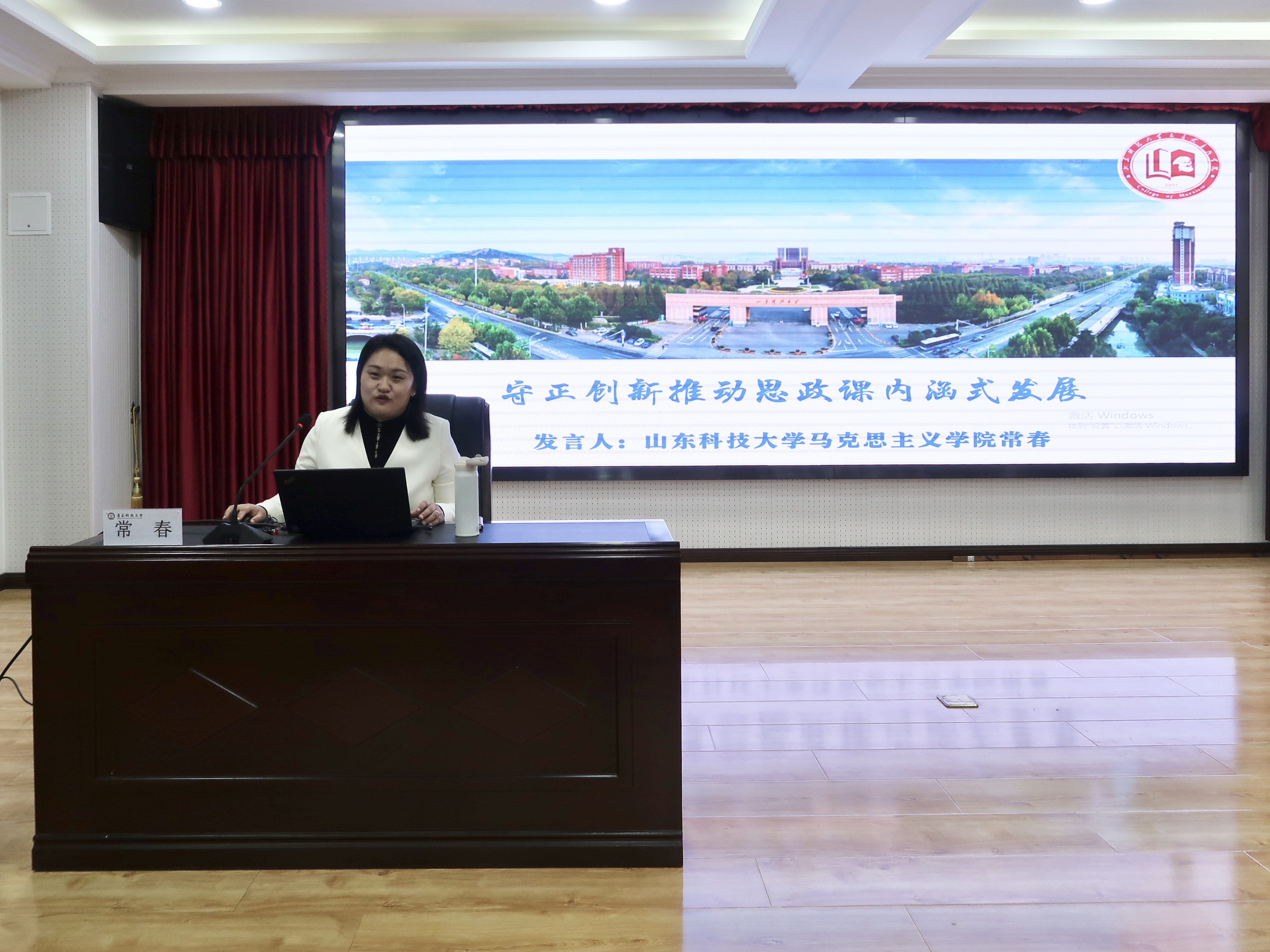 论坛主旨报告阶段,由bevictor伟德官网副经理郭江龙主持。山东科技大学bevictor伟德官网副经理、山东省普通高等公司教学名师、山东省教学成果一等奖获得者、山东省公司思政课“思想道德与法治”分教指委委员常春教授以《守正创新推动思政课内涵式发展》为题作专题报告,思政课教师要以中国特色社会主义取得的举世瞩目成就为内容支撑,以中华优秀传统文化、革命文化和社会主义先进文化为力量根基,用鲜活的素材、灵活的方式增强思政课的思想性、理论性和亲和力、针对性,坚持在守正创新中推动思政课建设高质量发展。