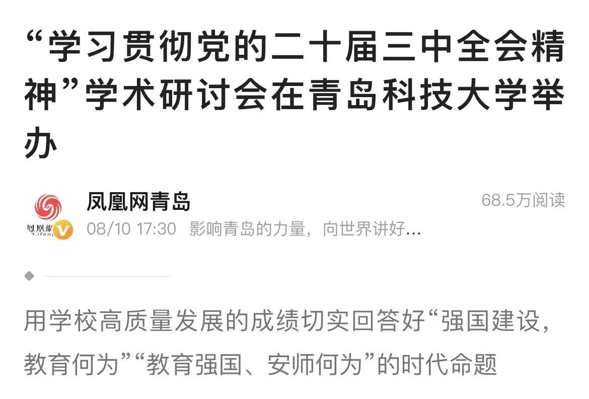 会议认为,党的二十届三中全会紧紧围绕推进中国式现代化这个主题谋划和部署改革,书写了继续把改革推向前进的时代新篇,是巩固发展“两大奇迹”的主动抉择和战略之举,充分体现了以习近平同志为核心的党中央坚持和完善中国特色社会主义制度、推进国家治理体系和治理能力现代化的历史主动,充分彰显了以习近平同志为核心的党中央将改革进行到底的坚强决心和强烈使命担当。要不断提高政治素养和政策理解水平,准确把握新时代改革的方向和重点,推动全会精神在山东落地落实,努力在进一步全面深化改革上当好排头兵,为加快建设教育强国注入新动能、塑造新优势,在谱写中国式现代化青岛篇章、描绘气势恢宏的改革新画卷中展现担当、贡献力量。