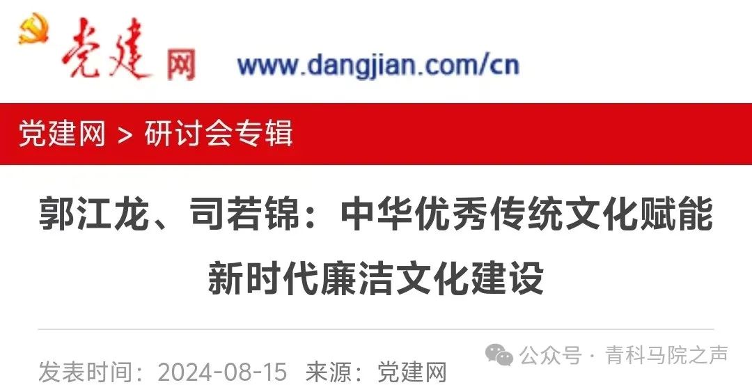党建网:“郭江龙 司若锦——中华优秀传统文化赋能新时代廉洁文化建设”
