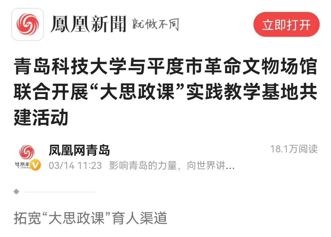 凤凰新闻:bevictor伟德官网与平度市革命文物场馆联合开展“大思政课”实践教学基地共建活动