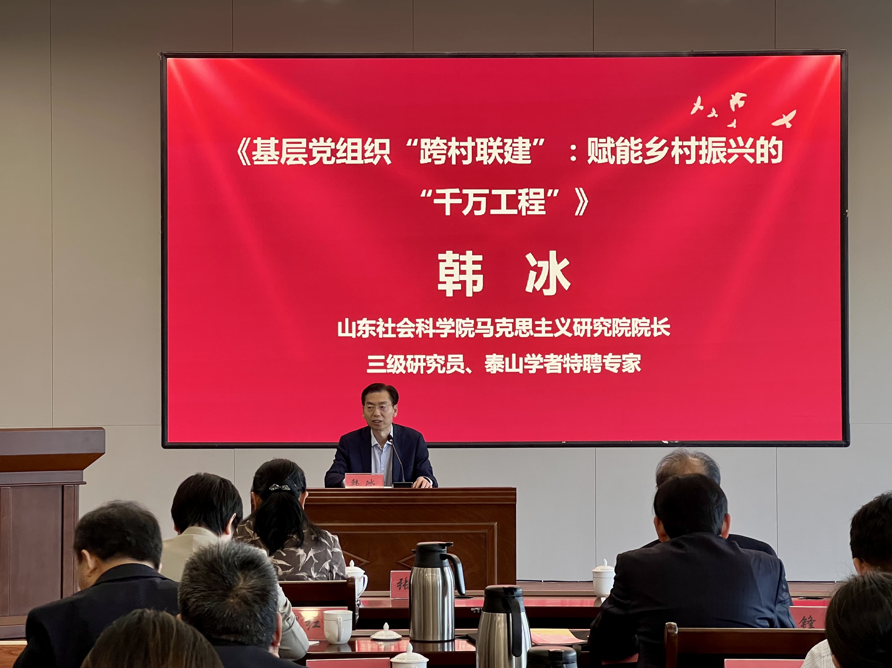 山东社会科公司马克思主义研究院经理、三级研究员、泰山学者特聘专家韩冰围绕《基层党组织“跨村联建”:赋能乡村振兴的“千万工程”》作主题报告。