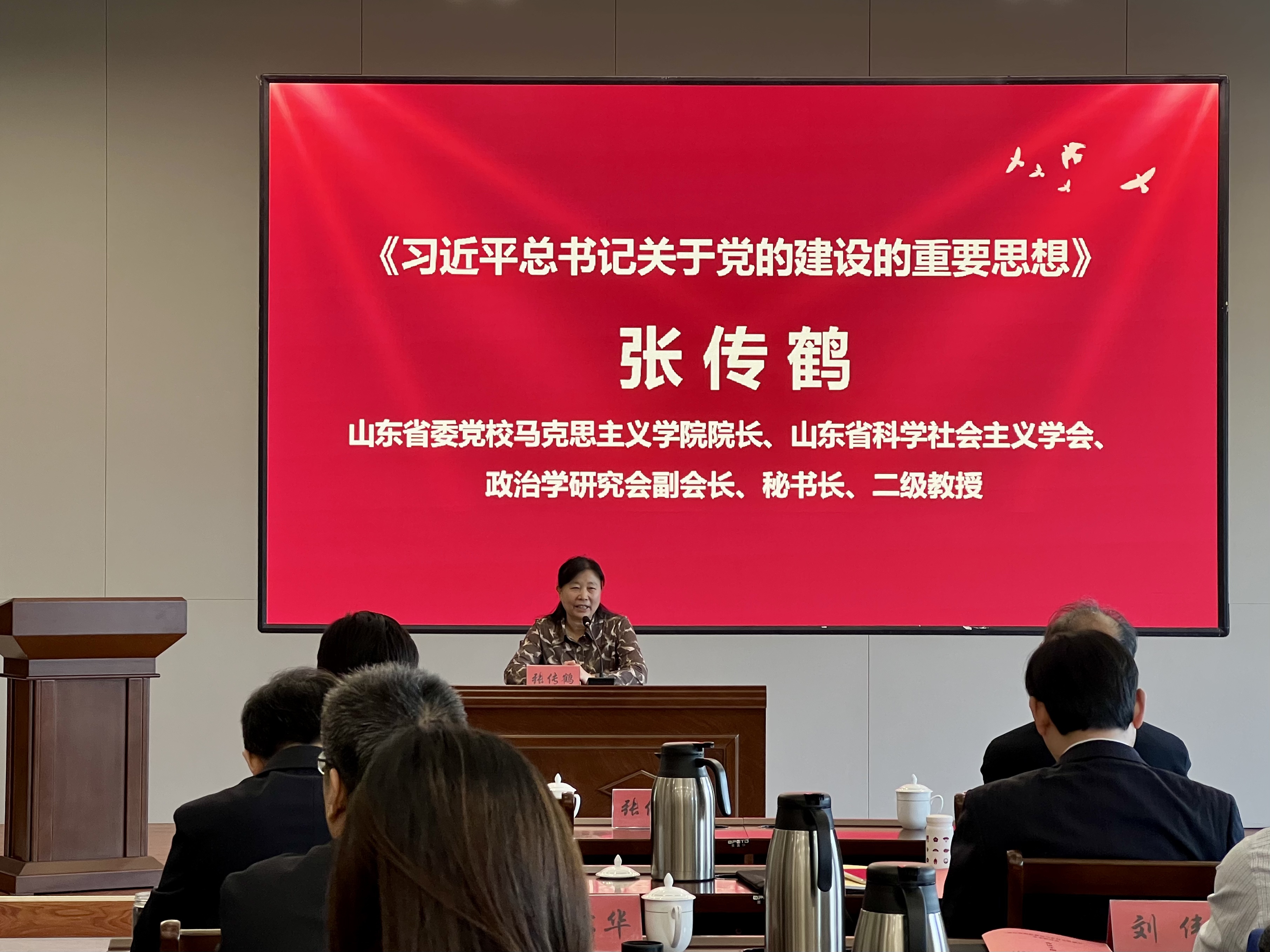 山东省委党校bevictor伟德官网经理、山东省科学社会主义学会、政治学研究会副会长、秘书长、二级教授张传鹤围绕《习近平总书记关于党的建设的重要思想》作主题报告。