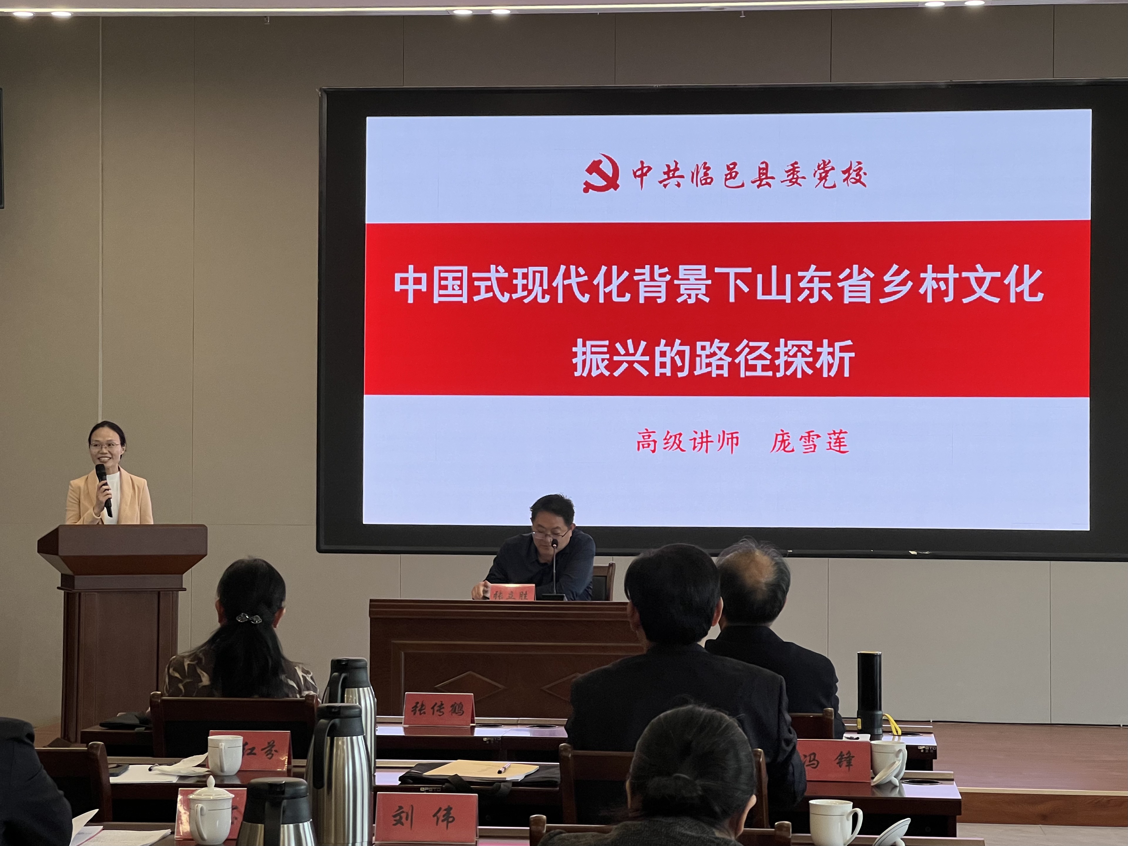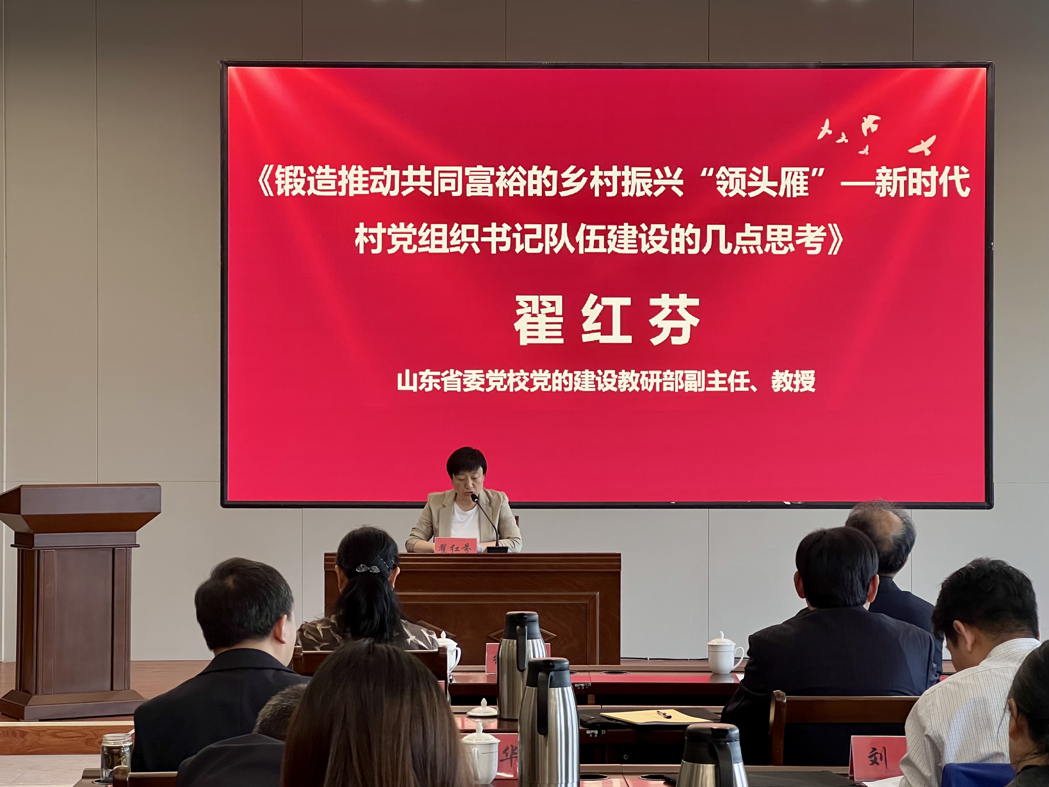 山东省委党公司党的建设教研部副主任翟红芬教授围绕《锻造推动共同富裕的乡村振兴“领头雁”—新时代村党组织书记队伍建设的几点思考》作主题报告。