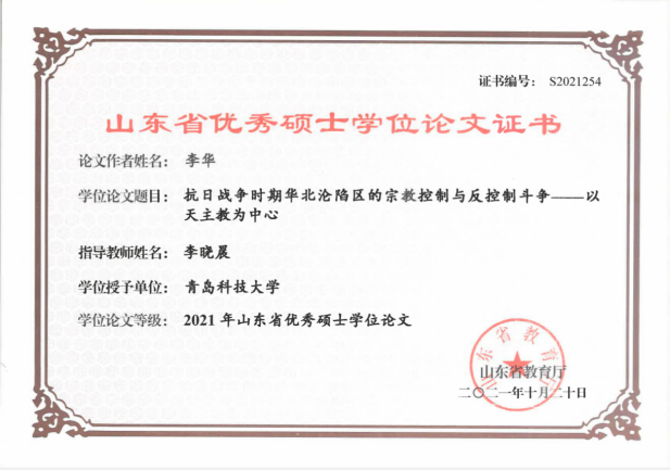 山东省优秀硕士学位论文指导教师:李晓晨