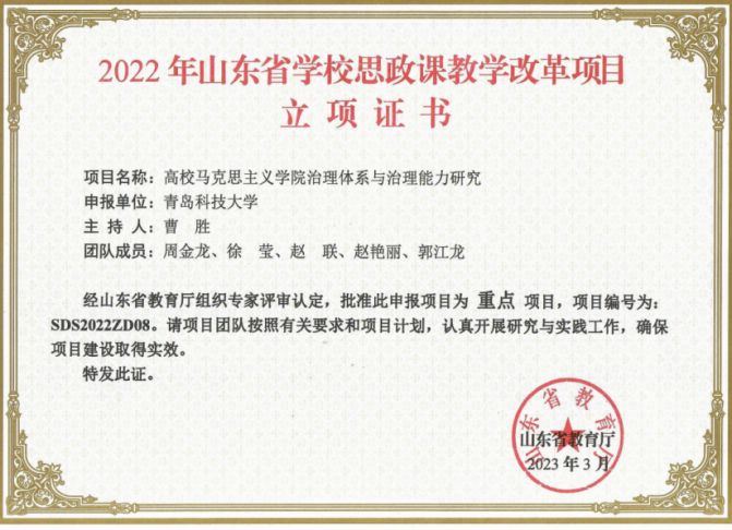 山东省公司思政课教学改革重点项目:高校bevictor伟德官网治理体系与治理能力研究