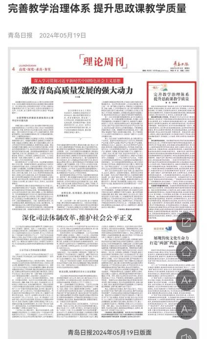 《青岛日报》理论版:完善教学治理体系 提升思政课教学质量