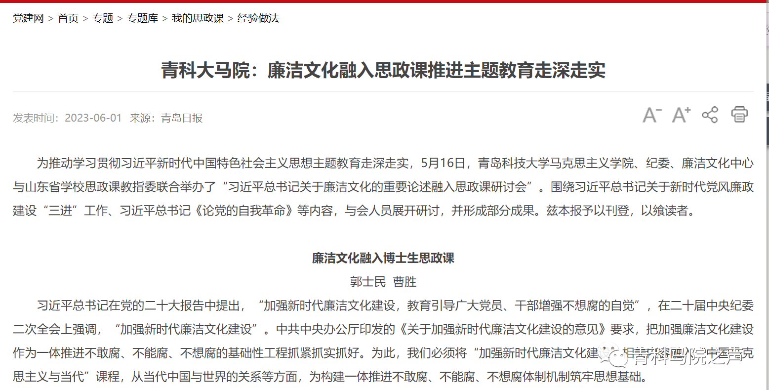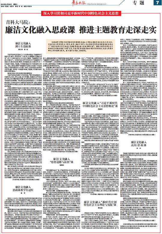 中宣部党建网·《青岛日报》理论版:廉洁文化融入思政课 推进主题教育走深走实