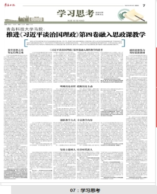 中宣部党建网.《青岛日报》理论版:推进《习近平谈治国理政》第四卷融入思政课教学2022年9月30日