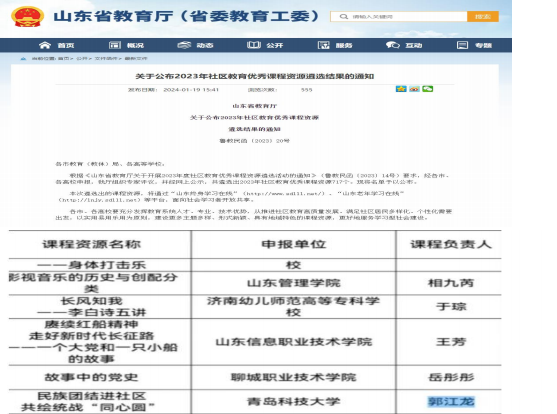 山东省社区优质课程资源项目: “民族团结进社区,共绘统战同心圆”
