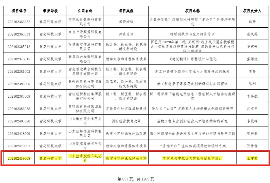 2021年度教育部产学协同育人项目:《思政课程虚拟仿真实验项目教学设计》