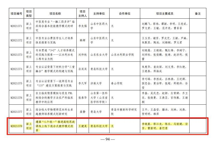 2021年度山东省本科教改课题:《遵循“八个统一”推进高校思政课线上线下混合式教学模式改革》