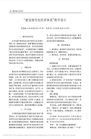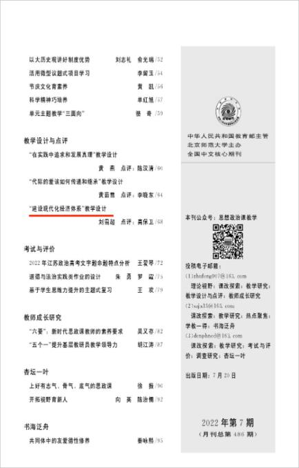 思想政治课教学202207:《“建设现代化经济体系”教学设计》,中文核心期刊