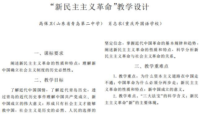 思想政治课教学202001:《新民主主义革命教学设计》,中文核心期刊思想政治课教学202001:《新民主主义革命教学设计》,中文核心期刊
