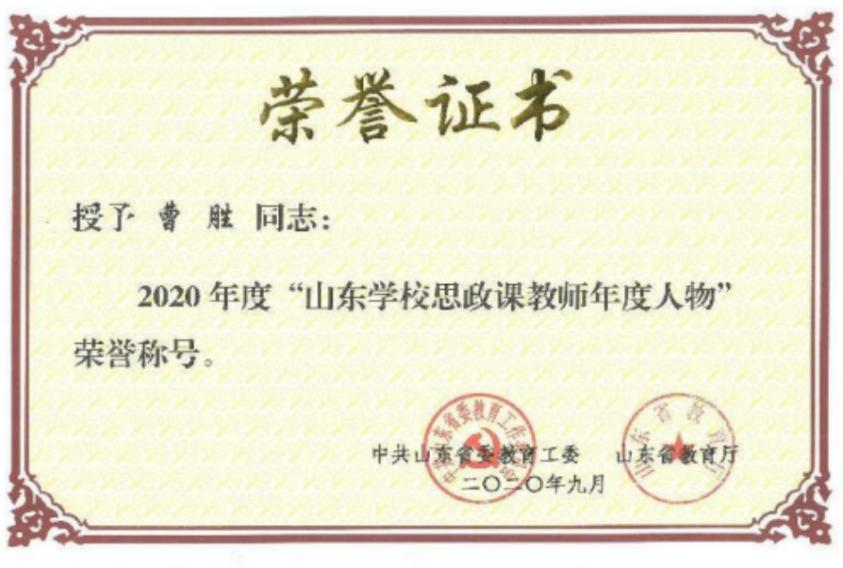 2020年:山东公司思政课教师年度人物——曹胜