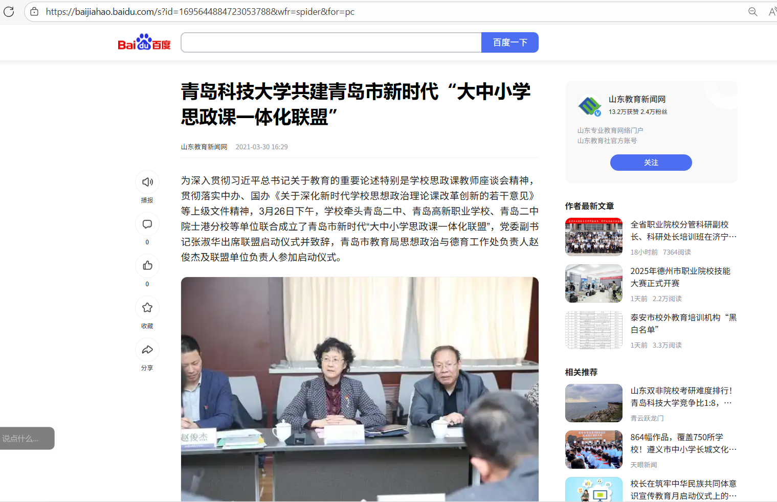 20210330山东教育新闻网:bevictor伟德官网共建青岛市新时代“大中小学思政课 一体化联盟”