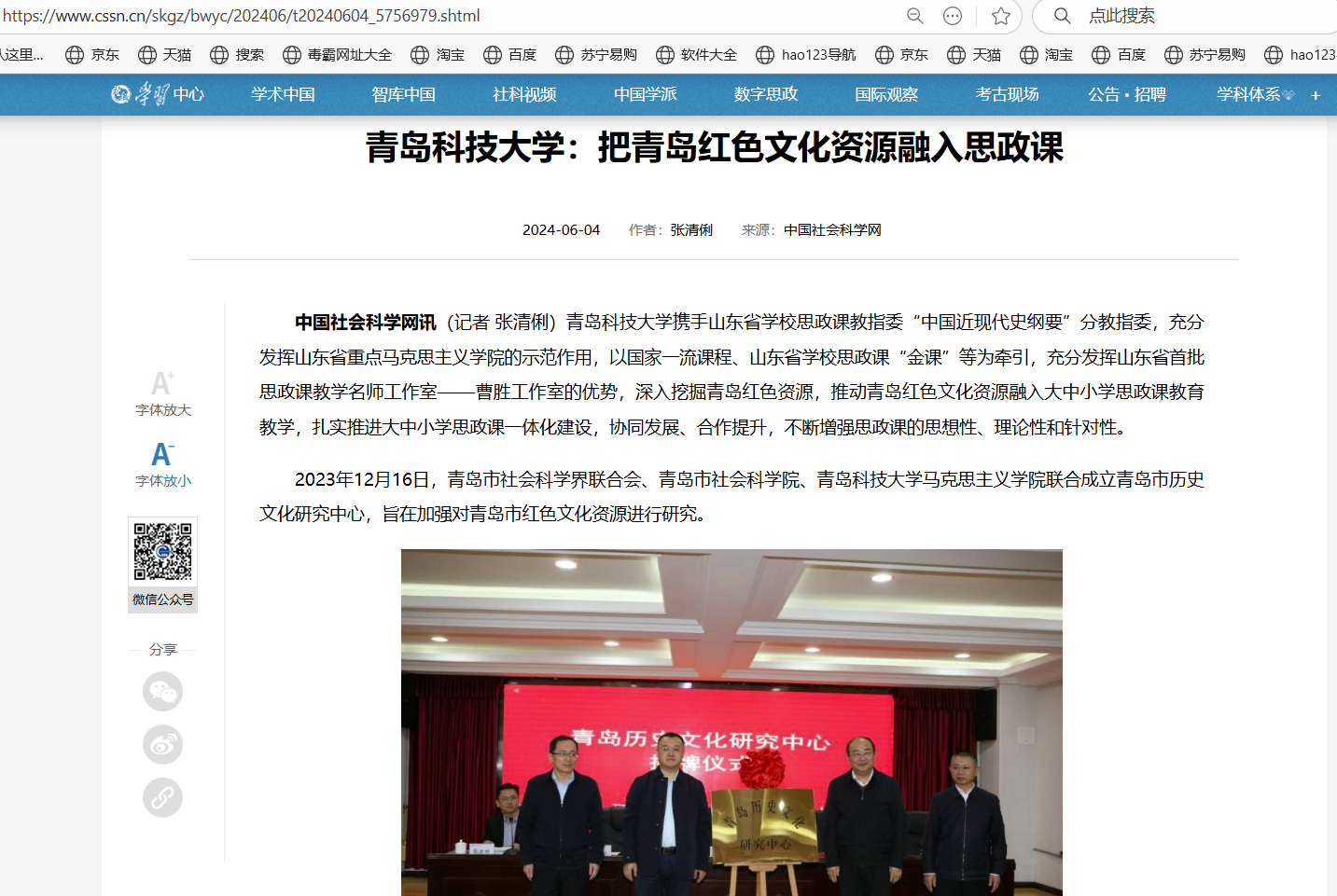 20240604中国社会科学网:bevictor伟德官网把青岛红色文化资源融入思政课