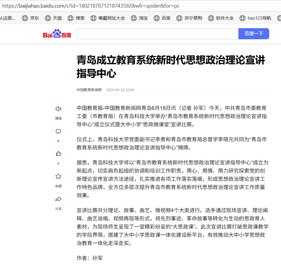 20240618中国教育新闻网:青岛成立教育系统新时代思想政治理论宣讲指导中心