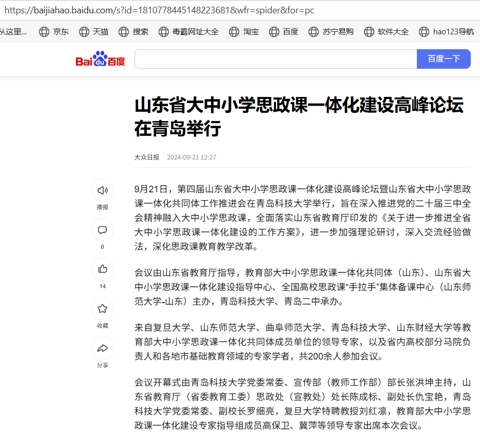 20240921大众日报:山东省大中小学思政课一体化建设高峰论坛在青岛举行