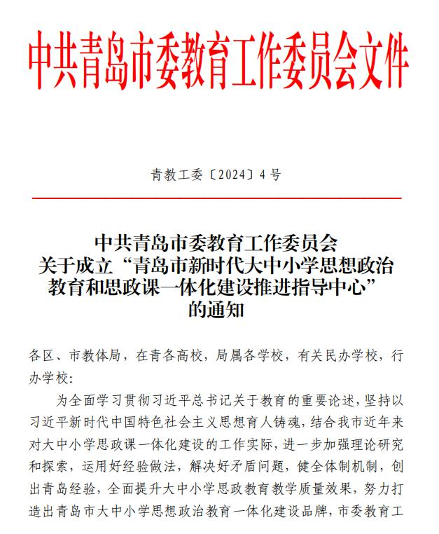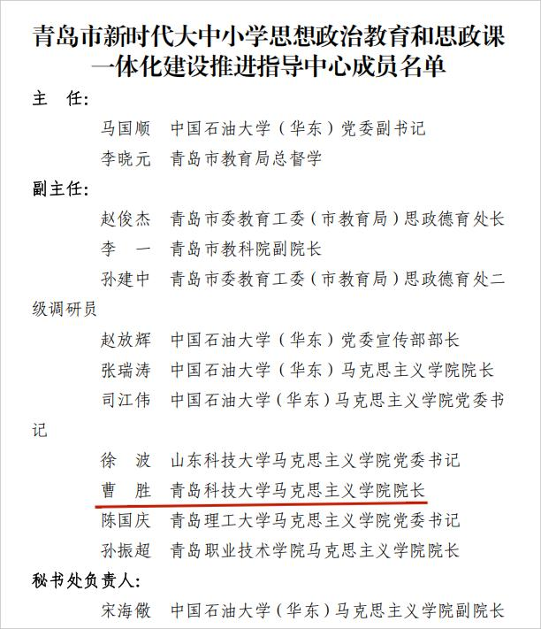 青教工委“青岛市新时代大中小学思想政治教育和思政课一体化建设推进指导中心”成员